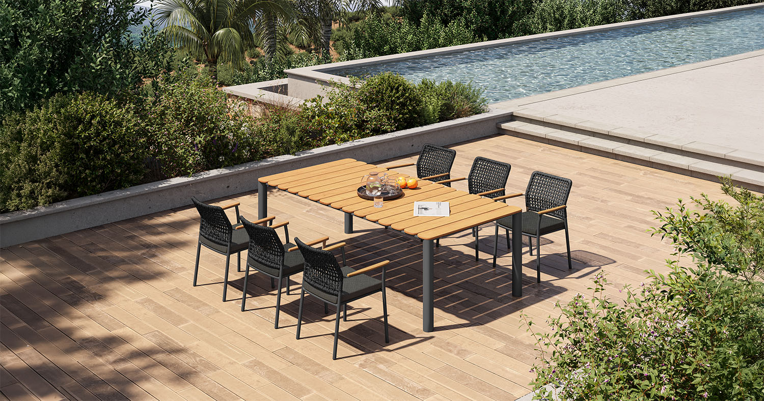 Diamond combines a classic weaving pattern with small but very noticeable design elements. The arm rest of the dining chair connects deli-cately to the back rest while the sofa set shows a nice harmony between an oval frame resting on sturdy rounded legs. For this occasion we combined the Diamond dining char with the Pipe dining table, designed by studioPANG, learning us that its perfectly fine to combine different products from different designers, leading to a perfect harmony.