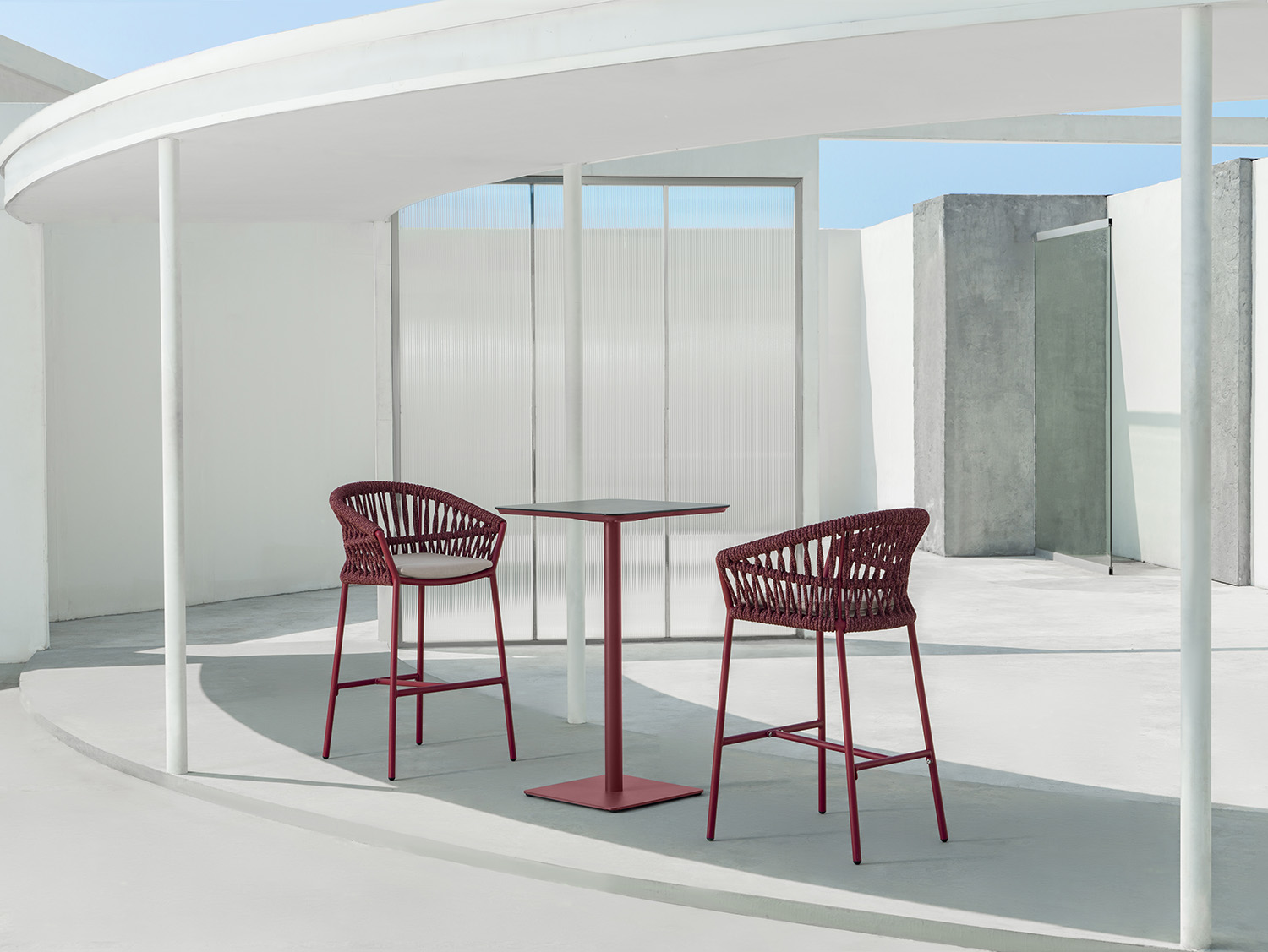 The meeting point between the weaving system and the aluminium frame of the stool generates an outstanding mix of design, functionality and comfort.